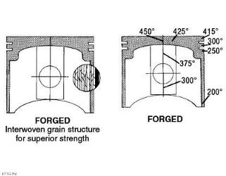 1) FORGED: All Wiseco Pistons are forged from high silicon, low expansion aluminum which offers superior strength, reduced weight, improved heat transfer, and longer life.