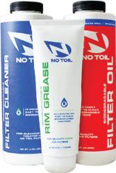 The No-Toil Maintenance Kit includes super tacky No-Toil Air Filter Oil, super heavy duty Filter Cleaner concentrate and 4 oz tube of No-Toil Filter Rim Grease. Everything you need for complete air filter maintenance is included in this convenient triple-pack kit.