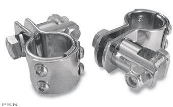 Three-piece design features chrome-plated steel clamp with billet 6061 T-6 aluminum footpeg mount